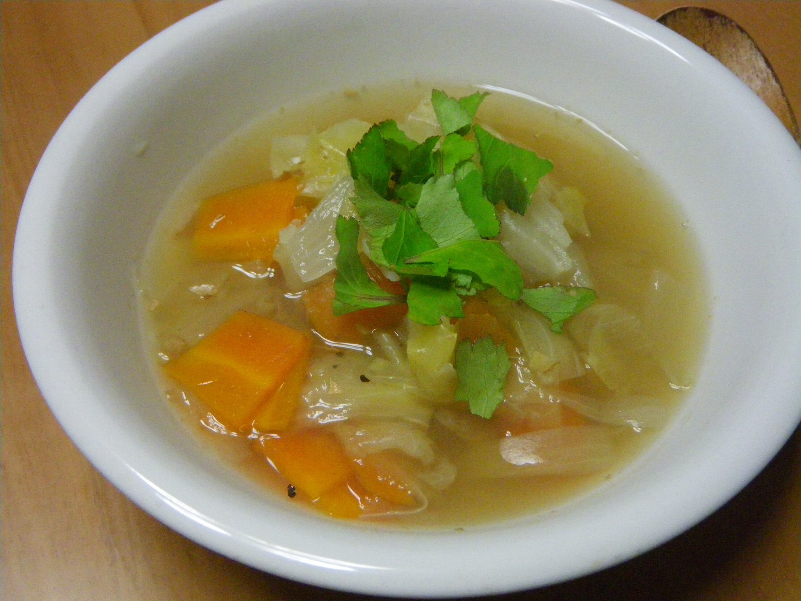 鹿の骨のスープはあっさりと上品な味わい。柔らかくなったスジはもちっとして美味しくいただけます。
